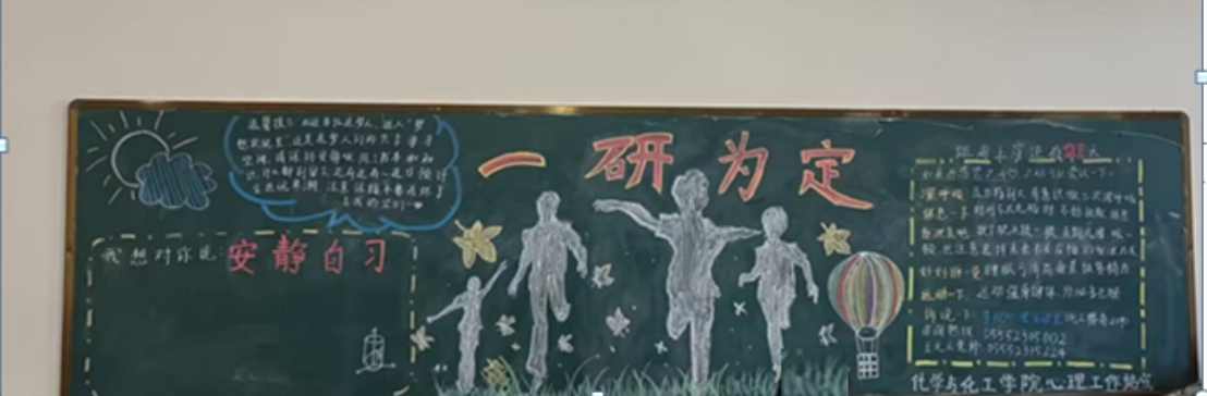 临近考研,为缓解考研学生压力,为考研学生提供合理的发泄途径,色情韩漫 心理工作站开展“一‘研’为定”板报宣传活动。