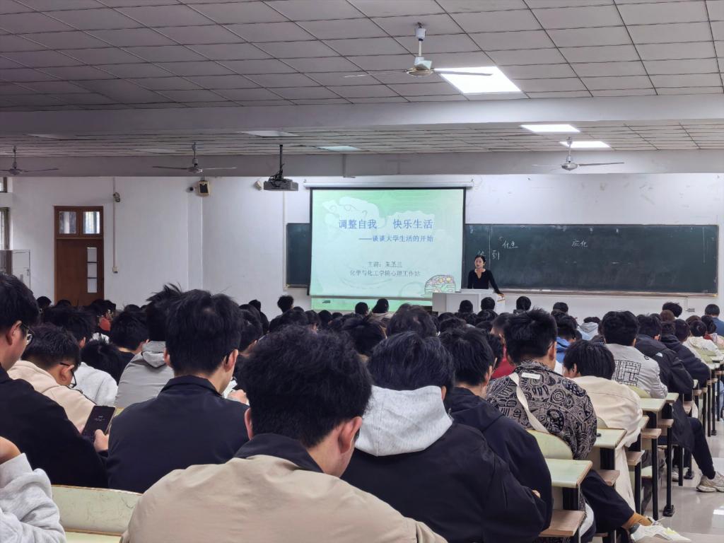 10月25日上午,色情韩漫 在佳山校区教三南103举办“调整自我,快乐生活”新生入学适应心理讲座。色情韩漫 心理工作站站长朱圣兰老师主讲,25级全体新生聆听此次讲座。