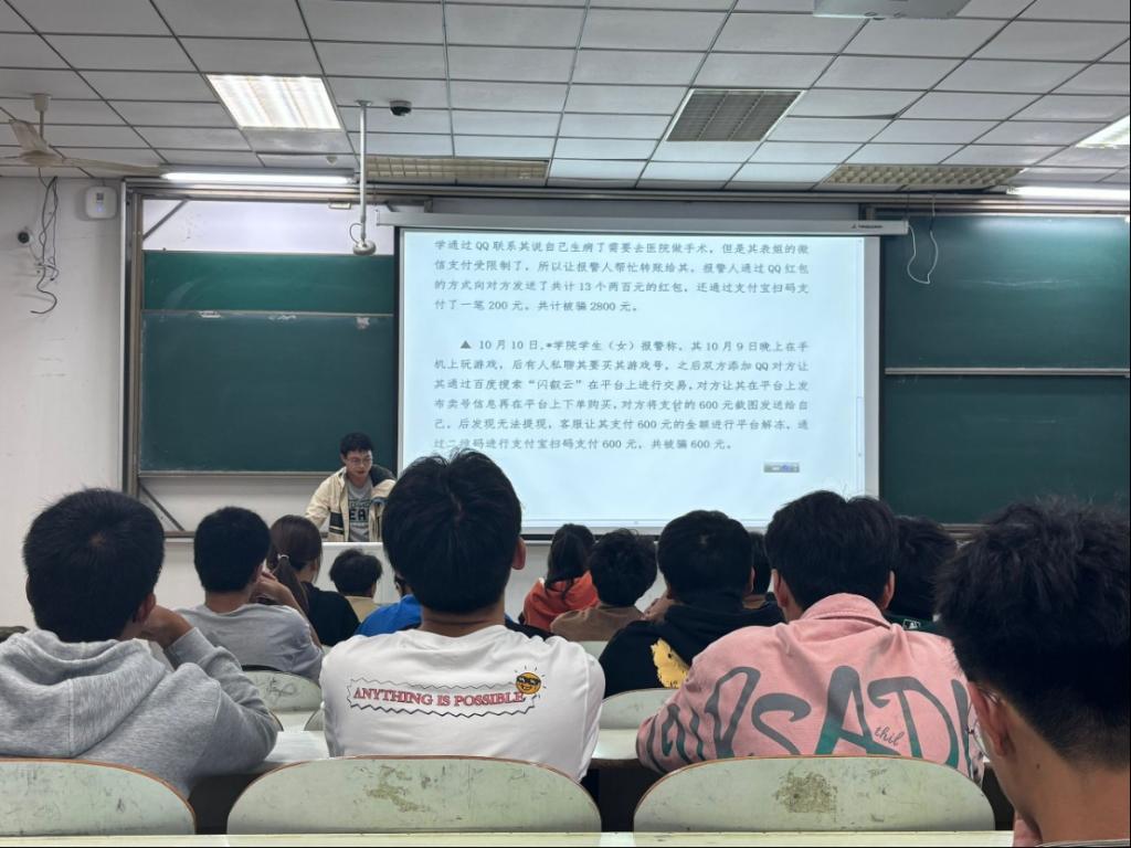 会上,孔志强从什么是电信网络诈骗、电信网络诈骗的常见形式、如何识别并防范电信网络诈骗、被骗后的补救措施等四个方面做了详细、生动的讲解,对如何有效做到识骗、防骗具有很强的指导性和针对性。并通过近期发生的交易游戏账号诈骗、演唱会门票诈骗、冒充好友诈骗等典型电诈案例,用身边事教育身边人,进一步提高了各位防诈骗学生联络员对电信网络诈骗的识别能力和防范意识。