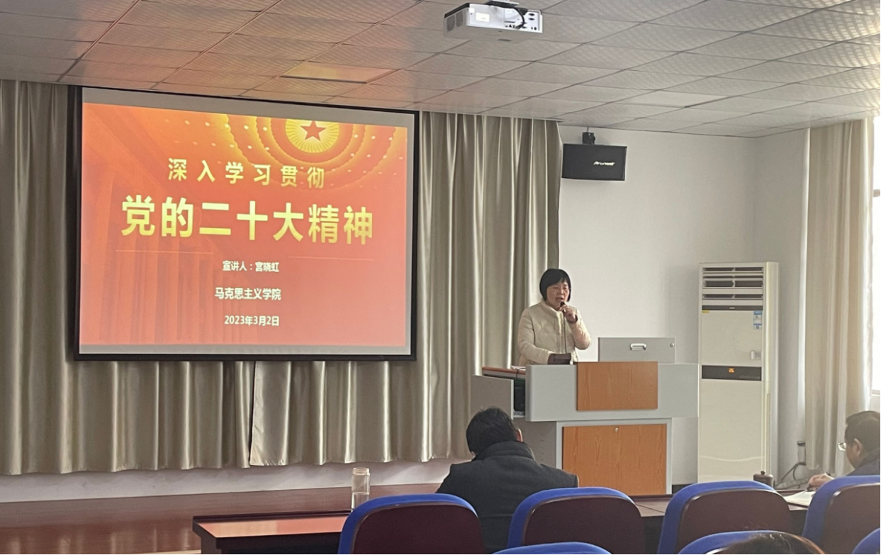 为深入学习宣传贯彻党的二十大精神,3月2日上午,校党委讲师团成员、马克思主义学院副院长宫晓虹应邀来色情韩漫 开展党的二十大精神专题宣讲,学院全体教师及学生代表在化工楼南207报告厅参加学习。