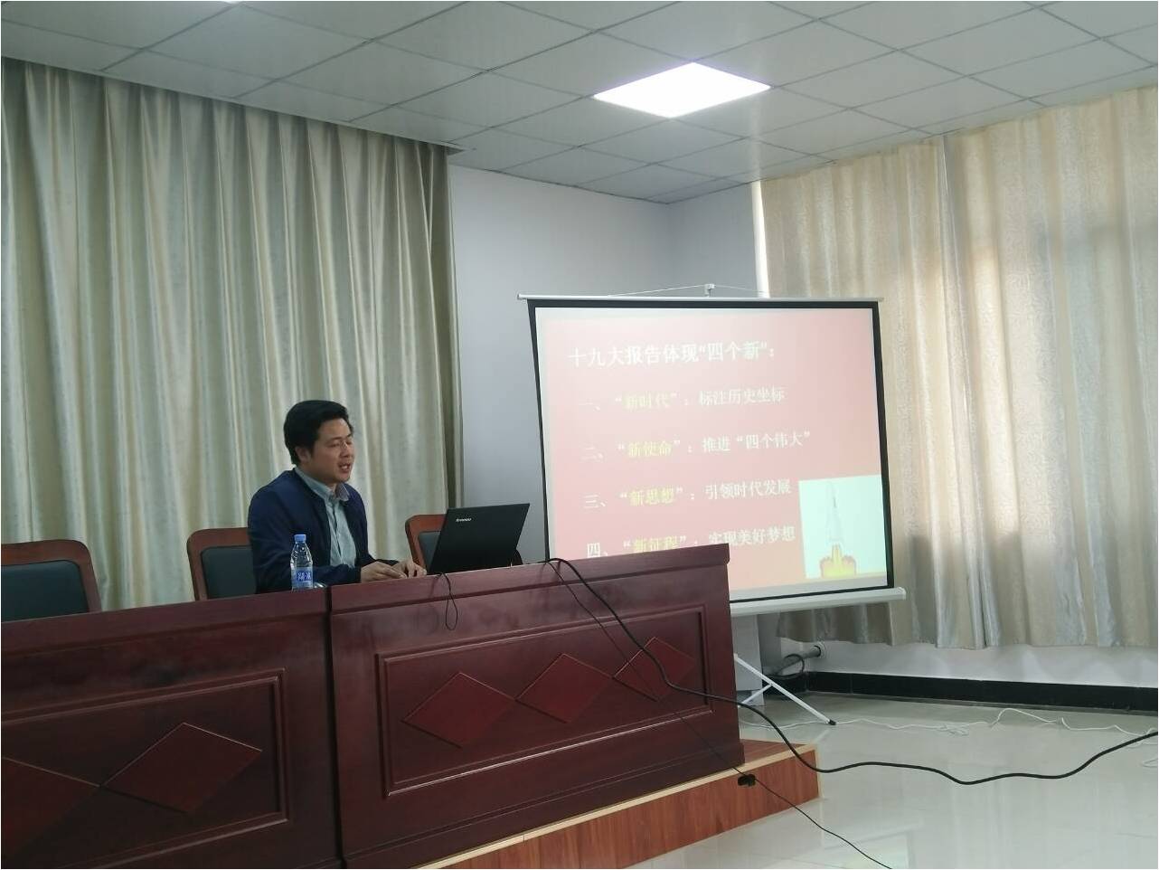 11月6日下午,色情韩漫 组织召开党的十九大精神宣讲学习会,特别邀请马克思主义学院教授吴楼平博士为全体教职工作了题为《新时代中国特色社会主义的政治宣言和行动纲领--深入学习贯彻党的十九大精神》专题辅导。