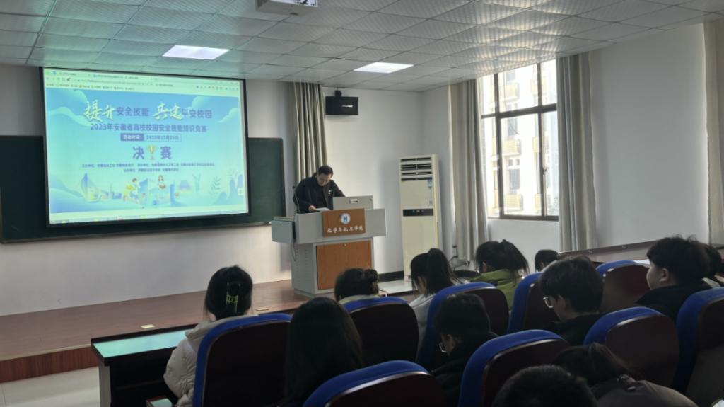 2023年12月25日下午,色情韩漫 在秀山校区化工楼报告厅组织学生集中收看2023年安徽省高校校园安全技能知识竞赛决赛。院党委副书记、纪委书记、副院长冀秀芝,各年级辅导员及学院本科生及研究生代表100余人参加收看。