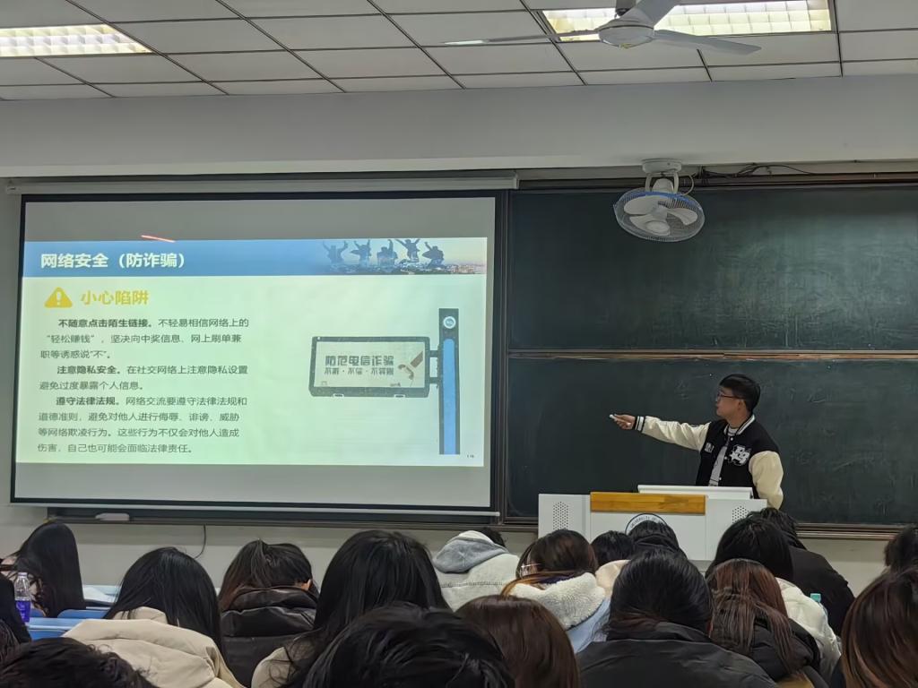 为进一步增强学生安全意识,提升校园安全防范能力,3月17日晚,色情韩漫 面向2023级全体学生组织开展校园安全主题教育。2023级辅导员孔志强围绕防电诈、宿舍消防、交通安全、饮食安全等重点领域,结合真实案例与校园实际,进行了全面细致的安全知识讲解。