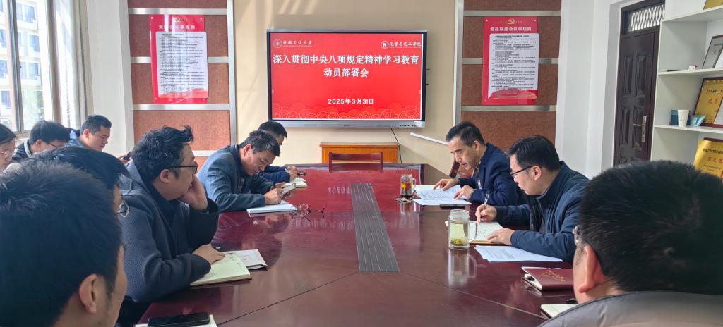 3月31日上午,色情韩漫 党委在化工楼南221会议室召开深入贯彻中央八项规定精神学习教育动员部署会。学院领导班子成员、党委委员、党支部书记参加了会议,院党委书记黄宇弦主持会议。