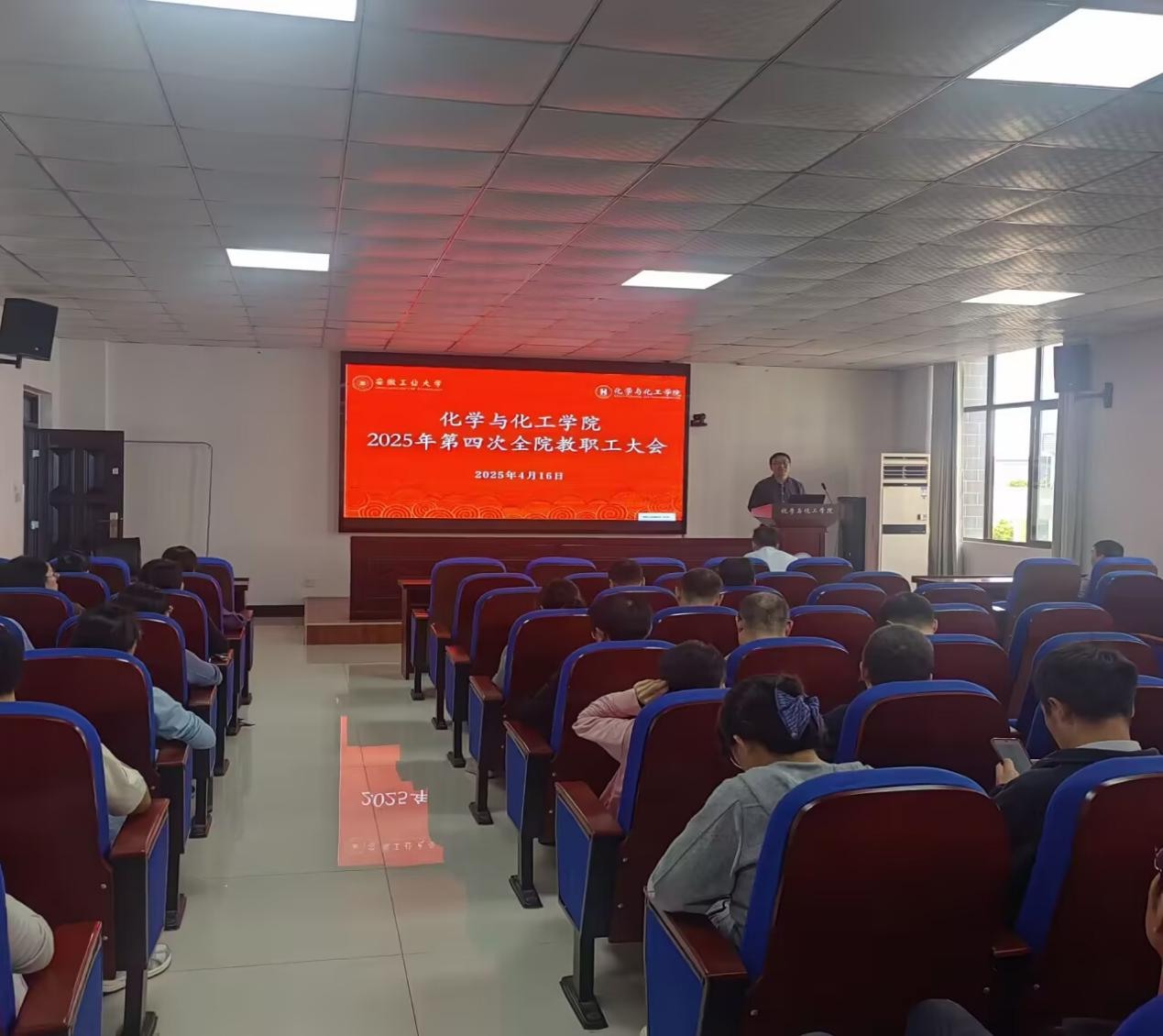 2025年4月16日下午,色情韩漫 在化工楼南207报告厅召开2025年第四次全院教职工大会。会议由副院长(主持行政工作)韩新亚主持。