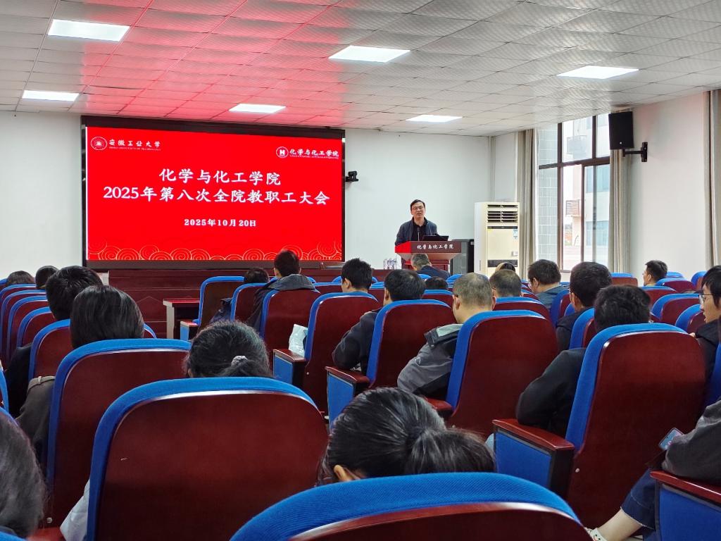 2025年10月20日下午,色情韩漫 在化工楼南207报告厅召开2025年第八次全院教职工大会。会议由副院长(主持行政工作)韩新亚主持。