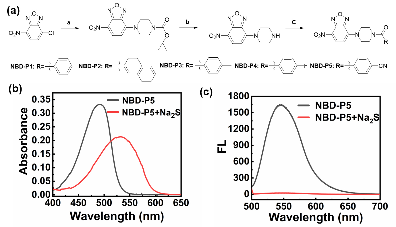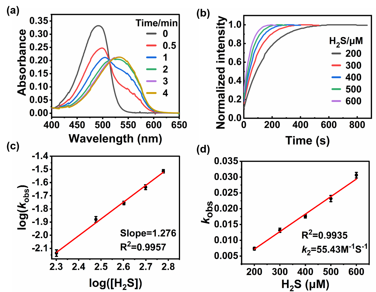 在生物体内,硫化氢(H2S)是一种重要的内源性气体信号分子,对维持细胞稳定和正常生命活动发挥着重要作用,适当的H2S水平可促进机体抗氧化、抗炎和抗凋亡作用。然而,过量的H2S可能会对机体产生负面影响,可诱导如神经退行性疾病、心血管疾病和各种癌症等疾病的产生。目前针对H2S的分子探针主要是对其进行检测识别,而对其体内浓度选择性调控报道不多,已报道H2S清除剂线性检测范围较小(< 200 μM),极大地限制了其在癌细胞中对H2S分析的应用。为了能够快速分析调控癌细胞中高浓度的H2S(> 200μM),需要开发出更宽线性响应范围的H2S清除剂。
