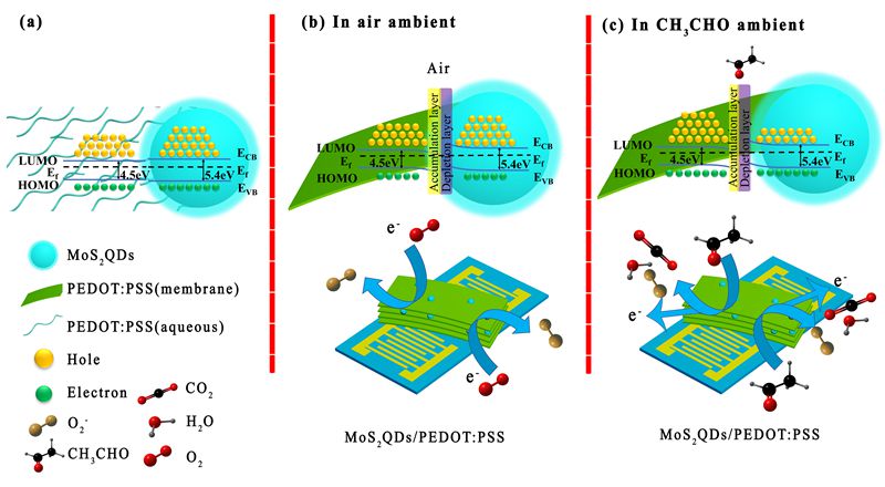 (MoS2QDs/ PEDOT: PSS复合材料对乙醛气体的传感机理研究)