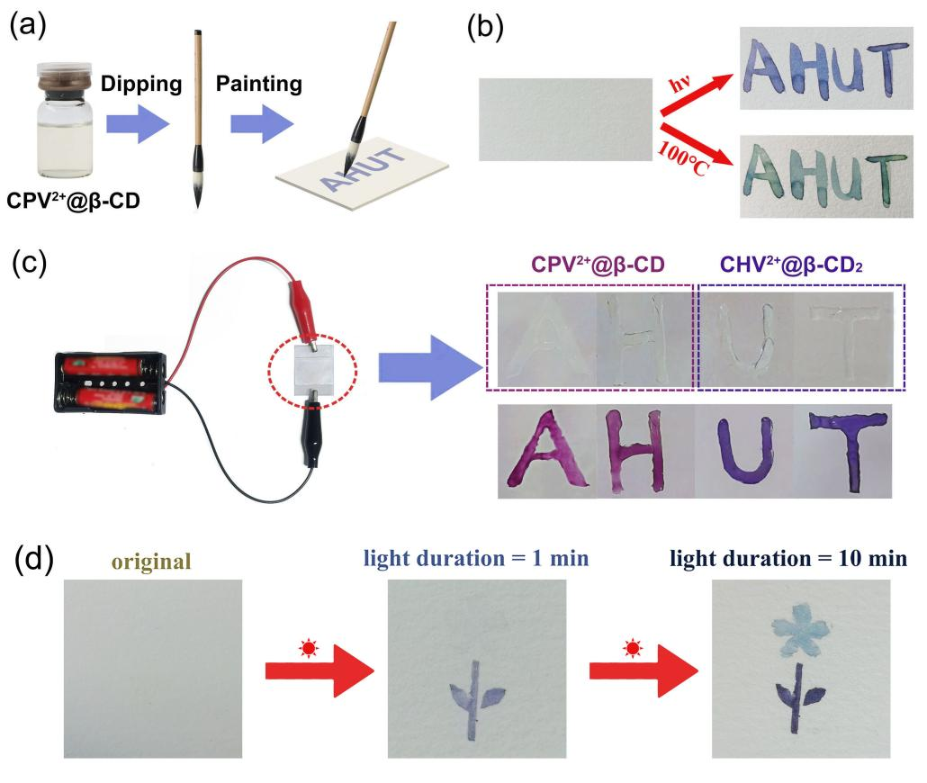 (贝塔环糊精和羧基取代紫精构筑的多重刺激响应变色材料)