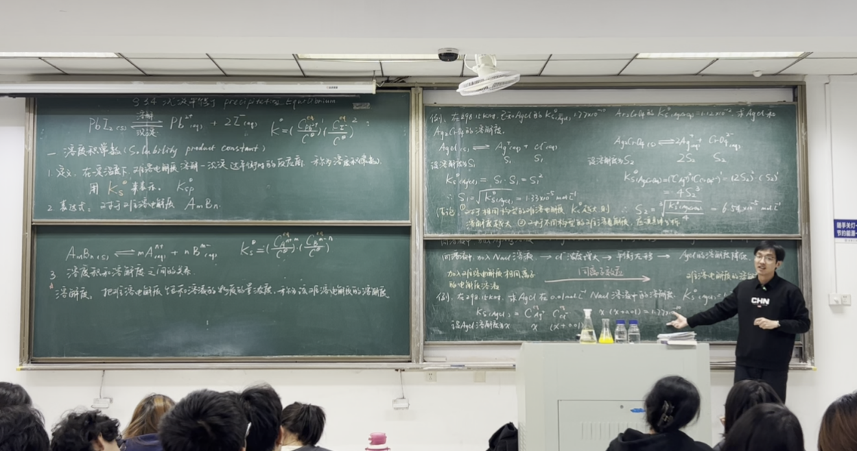 本次观摩课,主讲教师从酸碱平衡的复习入手,引入难溶电解质的多相离子平衡。围绕着溶度积常数、沉淀平衡中的同离子效应、溶度积规则、沉淀的溶解、沉淀的转化等重点问题展开。授课过程中,将知识传授与价值引领有机统一,在讲解溶解-沉淀平衡的过程中,结合化学平衡的基本原理,分析了事物的矛盾法则,即对立统一法则,是唯物辩证法的根本法则。在讲解水的净化过程中,联系“绿水青山就是金山银山”发展理念,使学生树立主动保护环境的意识。