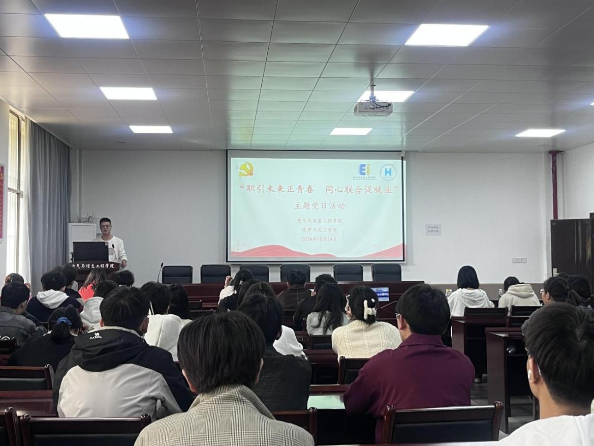 为学习贯彻党的二十届三中全会精神,帮助学生明确就业方向,提升求职技巧,规避求职误区。10月24日,色情韩漫 高分子专业本科生党支部、应用化学专业本科生第一党支部与电气与信息工程学院学生测控党支部联合开展了“职引未来正青春,同心联合促就业”的主题党日活动。活动由电气学院学生测控党支部书记杨恒基主持,色情韩漫 学生党支部书记王元云、徐静婕、两学院学生党员代表参加。