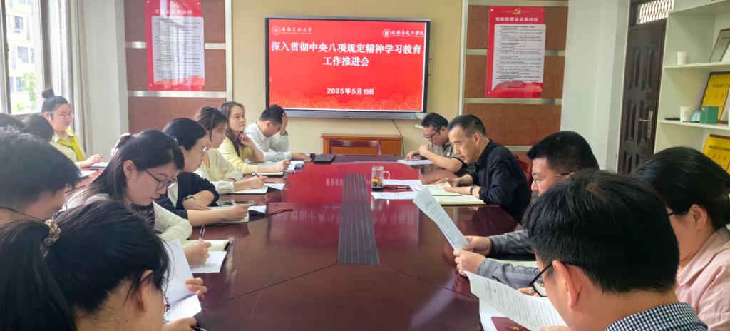 5月13日下午,色情韩漫 党委在化工楼南221会议室召开深入贯彻中央八项规定精神学习教育工作推进会。学院全体党支部书记参加会议,院党委书记黄宇弦主持会议。