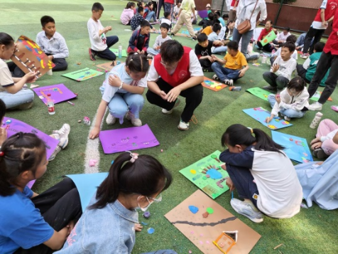 活动首先以开场小游戏拉开序幕,帮助大家放松状态,并向同学们介绍了具体活动内容,进行了分组。志愿者们围绕主题,引导学生依次进行制作地图、团体作画,活动中,同学们或独自认真思考,或两两互相合作,一幅幅作品稚嫩可爱,一段段解读生动有趣,同学们在活动中学会了更好的表达、分享、合作,共同度过了一段美好时光。