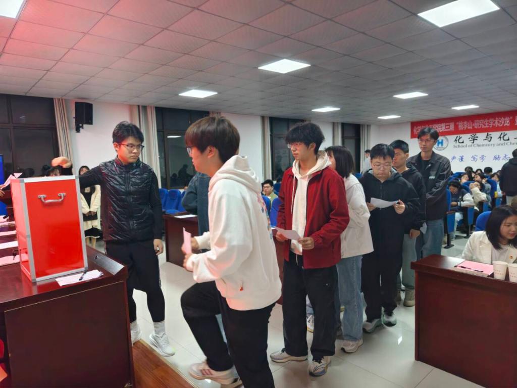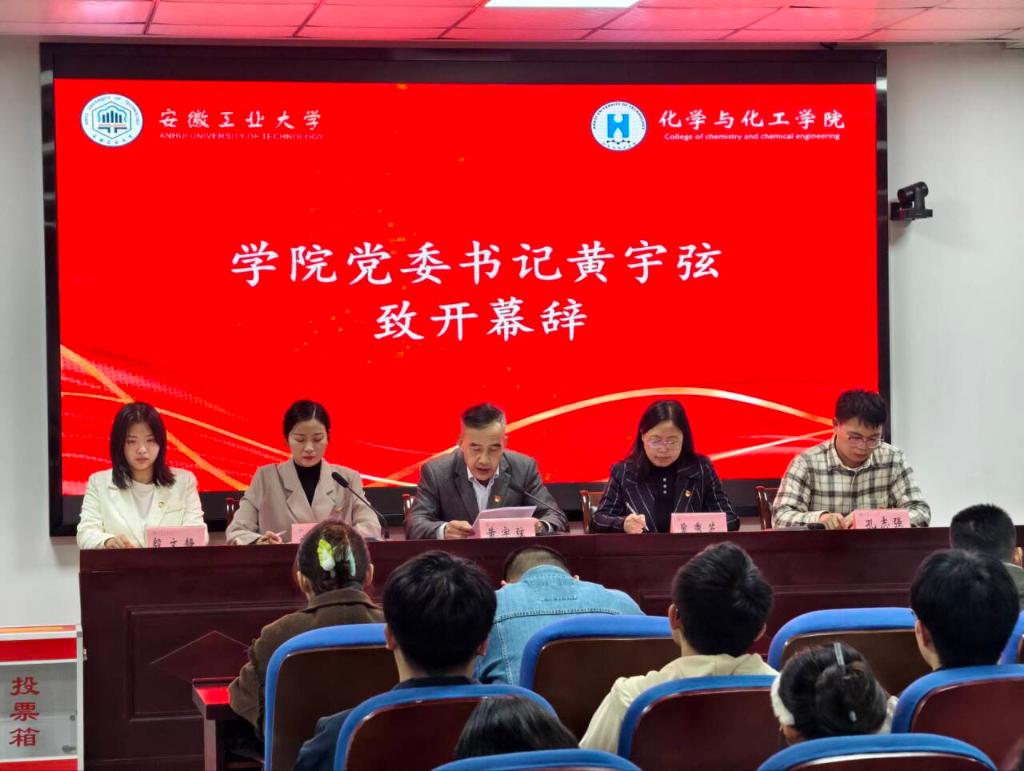 2025年11月3日晚,色情韩漫 第五次团员代表大会在秀山校区化工南楼207会议室召开。色情韩漫 党委书记黄宇弦、党委副书记冀秀芝、团委书记朱圣兰、团委副书记孔志强及全院团员代表参加,会议由朱圣兰主持。